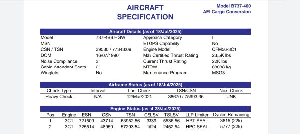 737-4Y0 Aircraft DETAILS as of 05/Aug/2025 see PDF attached YoM-11/Mar/1990 Price 6.95M USD See attached PDF (specifications) ALSO 737-4B6 HGW Aircraft details as of 18/Jul/2025 Price 6.25M USD. AVAILABLE L410 UVP-E10 2 aircraft? 1. YoM-1991 2.YoM-1985 further on request #hamroqu