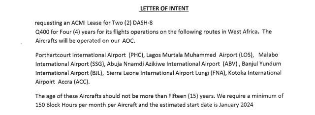 BUYER IS IN THE PROCESS OF STARTING A NEW AIRLINE